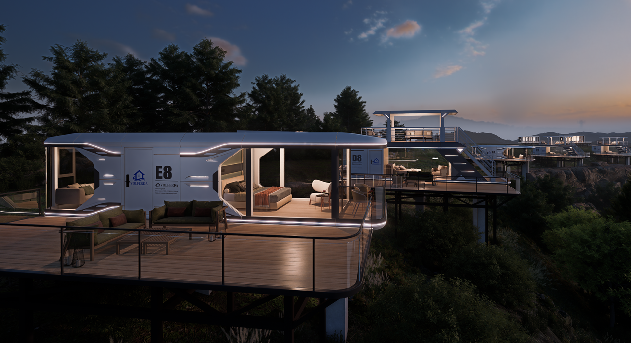 Volferda globally supply chain is located in Foshan, China. With a 30,000 square meter factory and 200 workers, the company employs an ERP and MES production management execution system, which allows it to produce up to 100 houses per month while reducing lead times to 20-25 days.