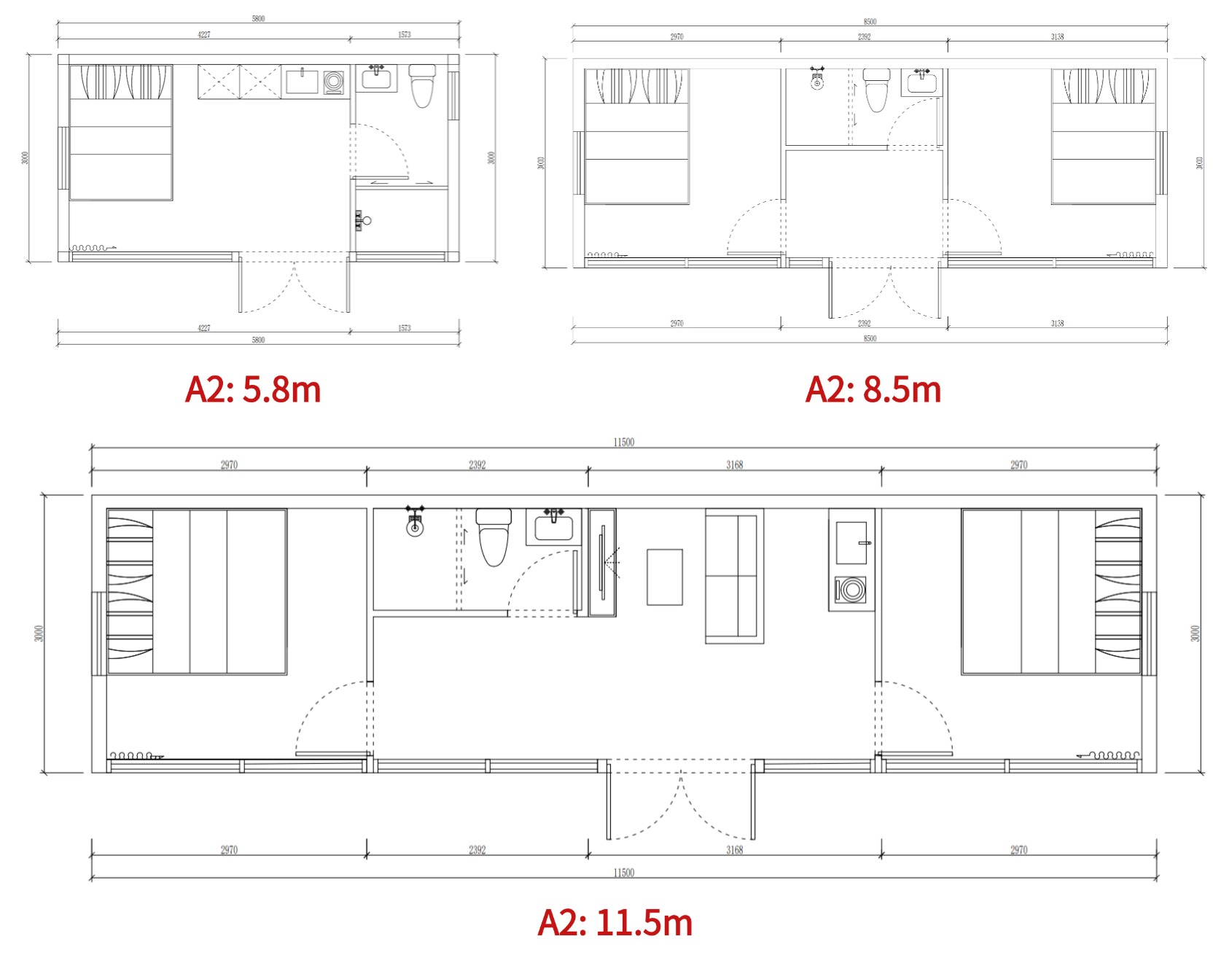 Beds: 2,Bath:1,Area: 34.5m² ,LxWxH: 11.5m x 3m x 3.2m